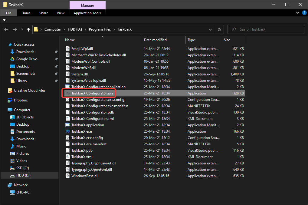 Dosyaları çıkardığınız klasörü açın ve TaskbarX Configurator’u çalıştırın.