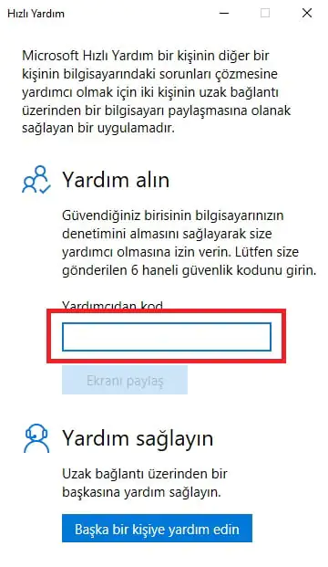 Ekranda bulunan programlardan biri çağrı destek uzmanı yönlendirmesiyle seçen kullanıcı sonrasında şöyle bir forma erişiyor.