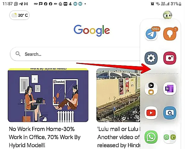 - Bölünmüş ekran modunda kullanmak istediğiniz ilk uygulamayı başlatın.