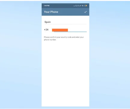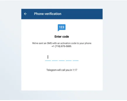 Telegram uygulamasında, SMS doğrulama kodunu girdiğiniz bir alan olacaktır.