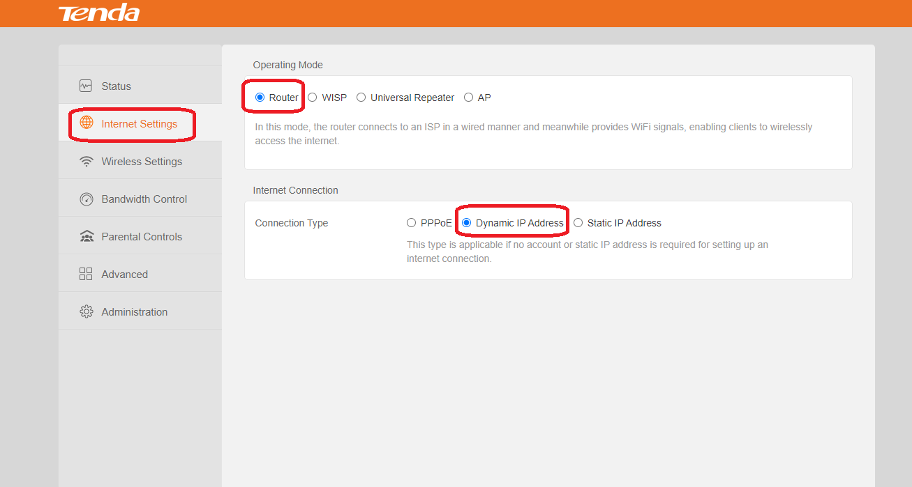 Arayüze ulaştıktan sonra Internet Setting komutuna tıklıyoruz. Daha sonra Operating Mode seçeneğine tıklayıp ardından Router seçeneğini işaretliyoruz.