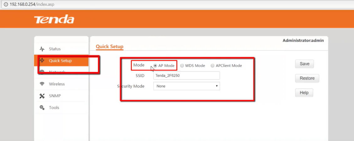 Hızlı kurulum alanı karşılayacak sizleri. Bu alanda Mode kısmını Ap Mode olarak seçelim.