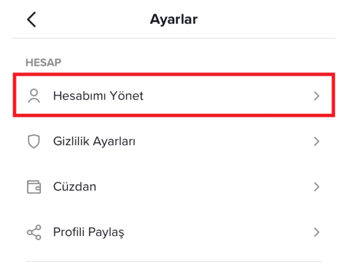 Açılan sayfadan “Hesabımı Yönet” seçeneğine dokunun