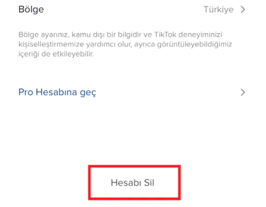 Son olarak ekranın alt kısmında bulunan kırmızı kutucuk içerisinde “Hesabımı Sil” seçeneğine dokununuz.