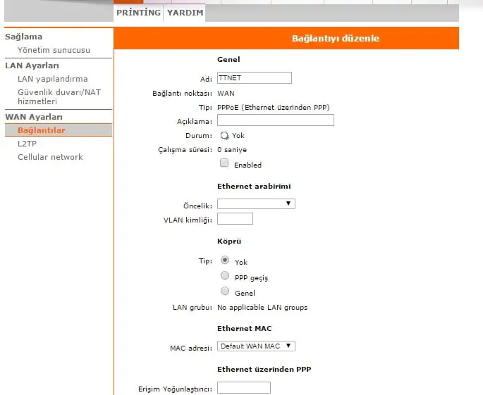 • Açılan sayfada soldaki menü listesinden sırasıyla WAN Ayarları → Bağlantılar menülerine tıklıyoruz.
