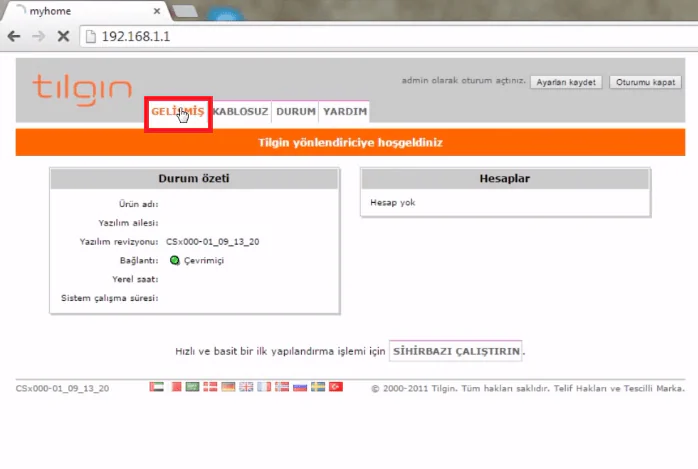 Not:Eğer modemi bir servis sağlayıcıdan aldıysanız (ttnet, vodafone, superonline), modemin şifresi ‘admin’ değil de servis sağlayıcınızın ismi olabilir.