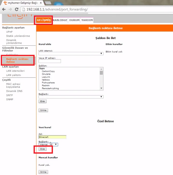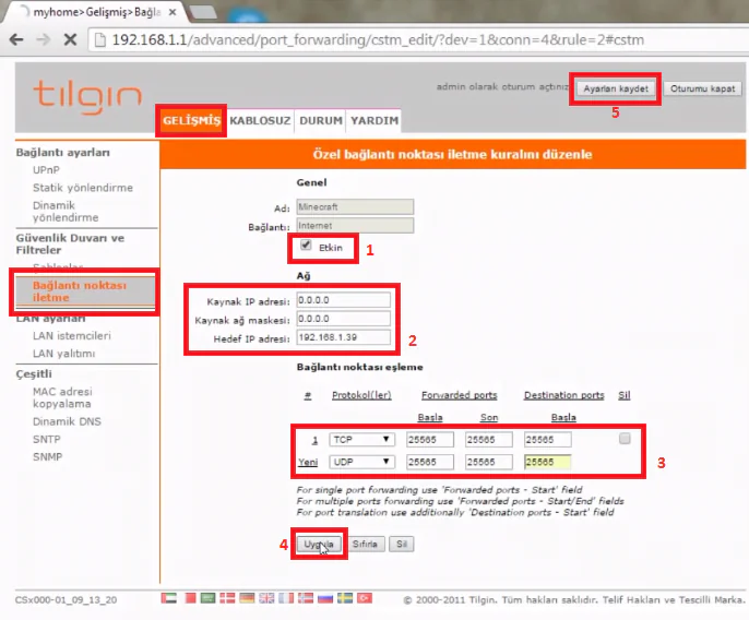 İşlem tamamlandı. Bu yöntemle hemen hemen tüm ‘Tılgın’ modemlerde port açma işlemi yapabilirsiniz. İşlemleri yaparken herhangi bir hata ile karşılaşırsanız, bu yazının altına yorum yazarak bizimle iletişim kurabilirsiniz. Sorunuz en kısa sürede cevaplanacaktır.