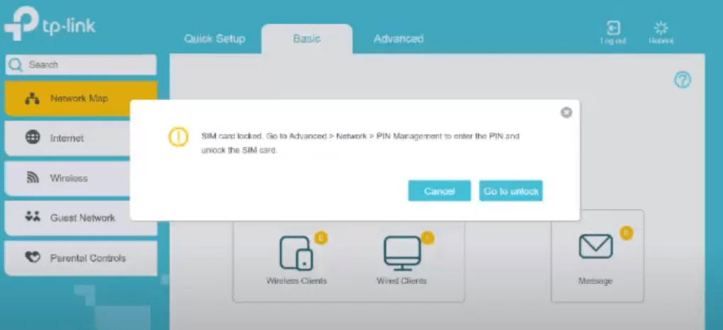 gelen uyarı mesajına takılan mobil data sim kartınızda sim pin kodu varsa Go To Unlock butonuna tıklayınız