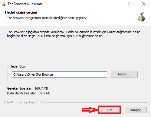 • Kurulum yapılacak hedef klasörü seçtikten sonra ‘Kur’ butonuna tıklıyoruz.