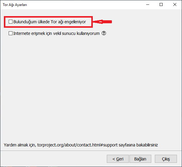 • ‘Bulunduğum ülkede Tor ağı engelleniyor’ kutucuğunu işaretliyoruz.