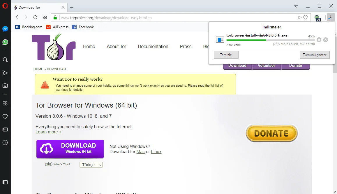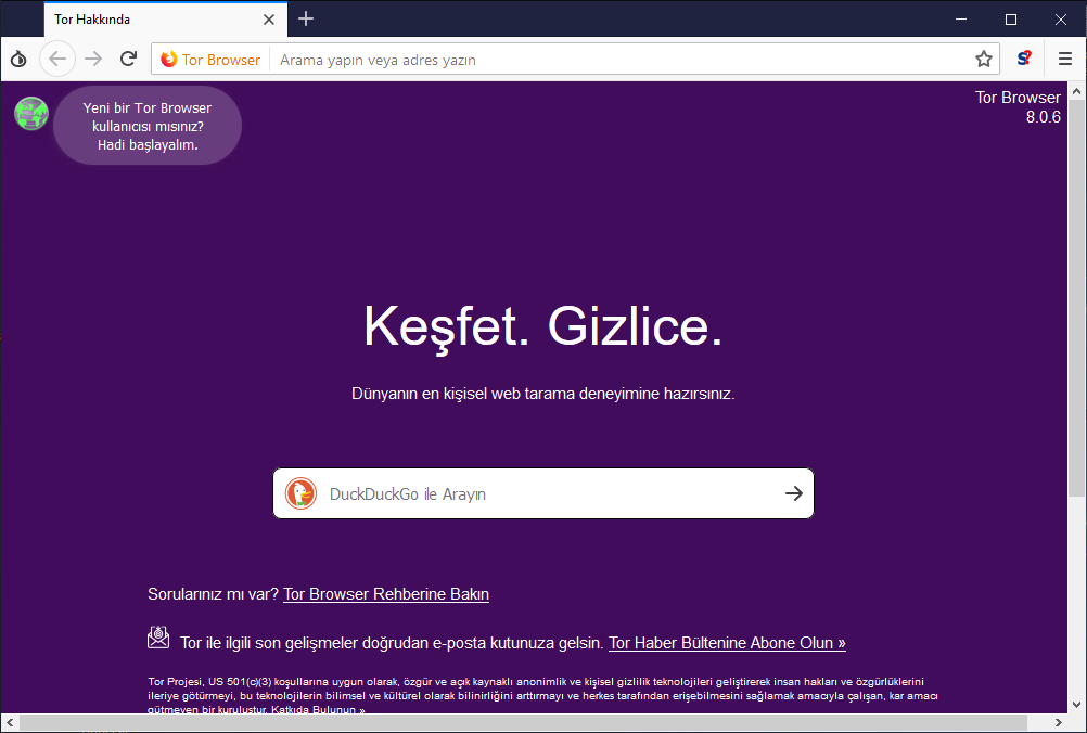 Tor ağını kullanmanın en kolay yolu Tor Browser’ı indirmek ve kurmaktır. Bu tarayıcı, sizi Tor ağına bağlayan bir sürü başka yazılım eklenerek değiştirilmiş bir Firefox sürümüdür.
