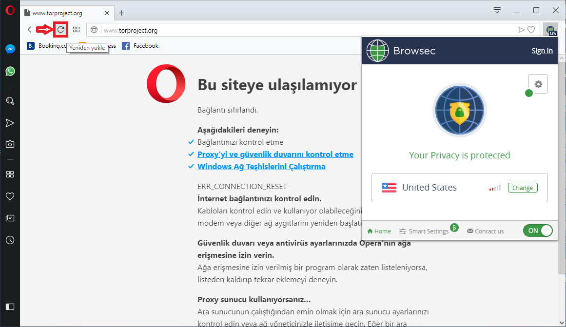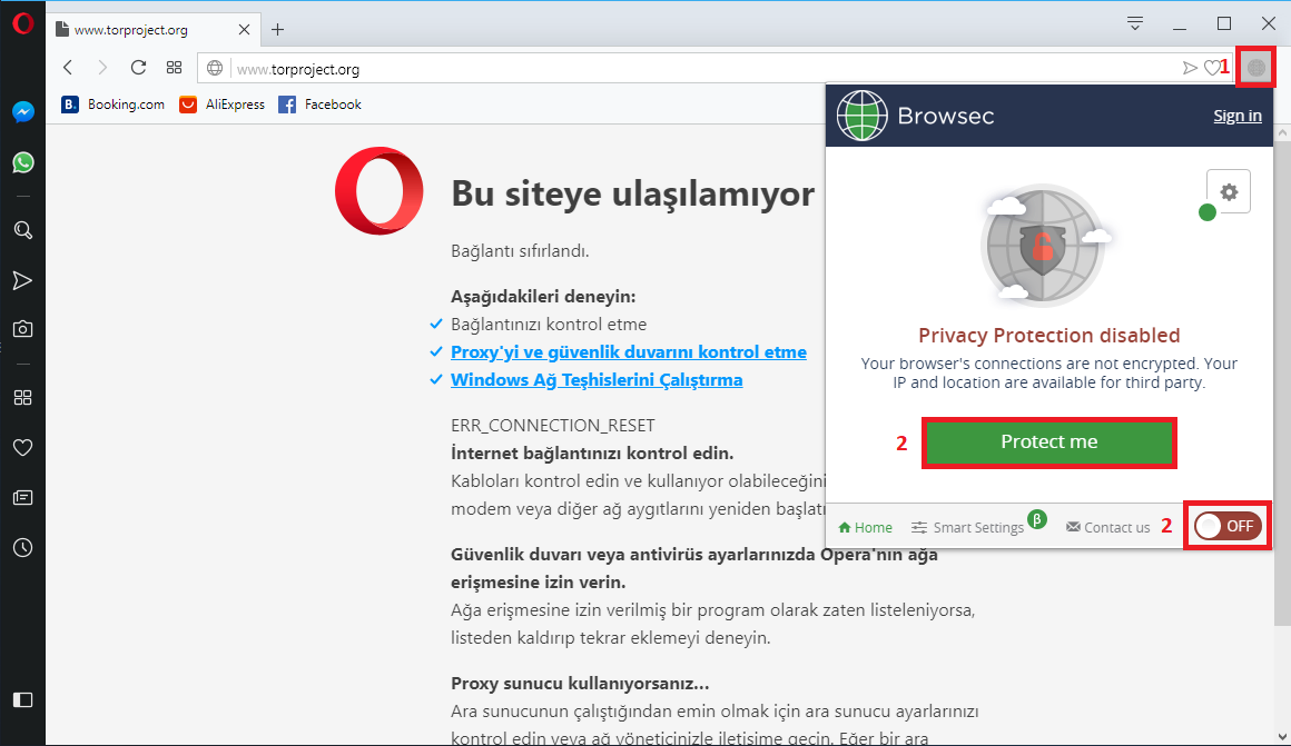 Ülkemizde Tor ağına ve dolayısıyla Tor Browser web sayfasına doğrudan erişim maalesef engellenmiştir. Bu nedenle Tor Browser’ı indirmek için VPN bağlantısı kullanacağız. Ülkemizde engellenmemiş ve ücretsiz kullanım seçeneği de sunan Browsec VPN’ni önerebilirim. Tüm tarayıcılara, tarayıcı eklenti mağazalarından eklenti olarak ekleyip etkinleştirerek VPN sunucularına bağlanabilirsiniz.