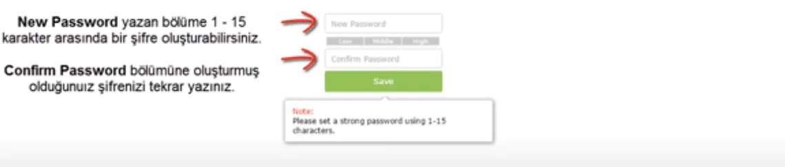 password kısımları aynı olucak şekilde kendinize uygun arayüz şifresini belirleyelim.