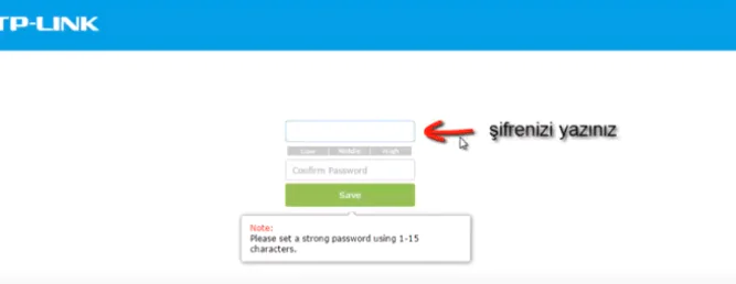 - Ekrana, yeni şifre belirleme sayfası gelecek. Bu sayfada, tercihinize göre herhangi bir şifre belirleyelim.