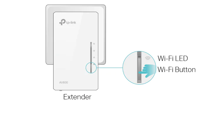 - 2-dakika içinde, powerline genişleticinin ön panelindeki Wi-Fi düğmesine 1-saniye süreyle basın. Wi-Fi LED‘i yanıp sönmeye başlar.