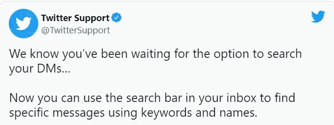 Son olarak Twitter, belirli anahtar kelimeleri kullanarak doğrudan mesajlarınızdaki (DM’ler) sohbetleri aramanıza izin verir. Daha fazlasını öğrenelim.