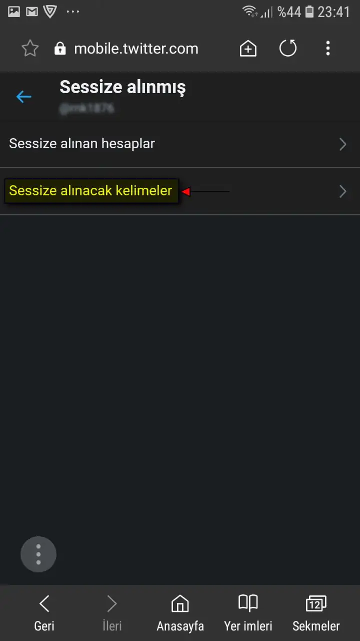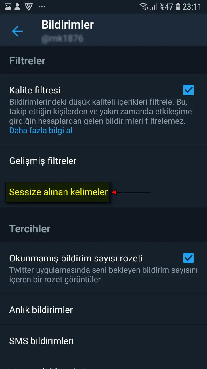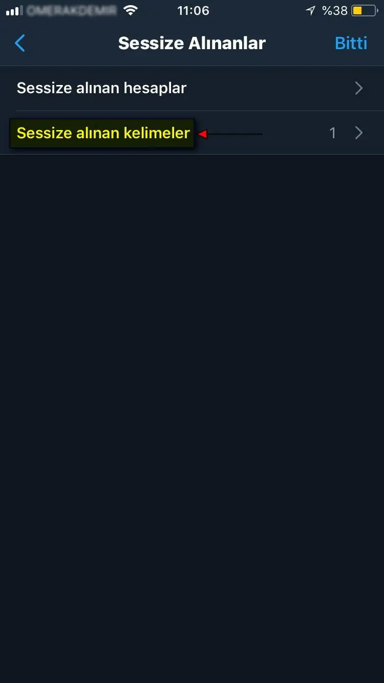 • Açılan sayfada ‘Sessize alınacak kelimeler’ menüsüne dokunuyoruz.