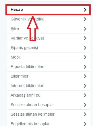• Açılan sayfanın sol tarafında yer alan menüler içerisinden “Hesap” menüsüne tıklıyoruz.