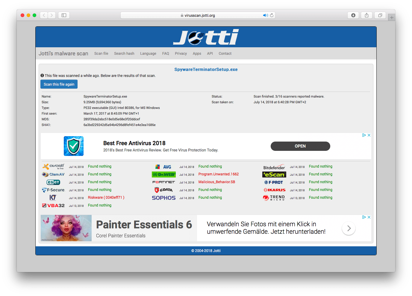 Jotti, dosya ilişkilerinin grafiksel bir görüntüsünden yoksun olabilir ve taramayı yazılım ve komut dosyalarına entegre etmek için bir API sunmuyor; bir formu taramak için hızlı bir şekilde olsa da, hızlı bir şekilde sonuç verir. Lamottably, Jotti ayrıca bulunan güvenlik tehditleri hakkında daha fazla bilgi yok. Yine de VirusTotal’a mükemmel bir çevrimiçi virüs tarayıcı alternatifidir.
