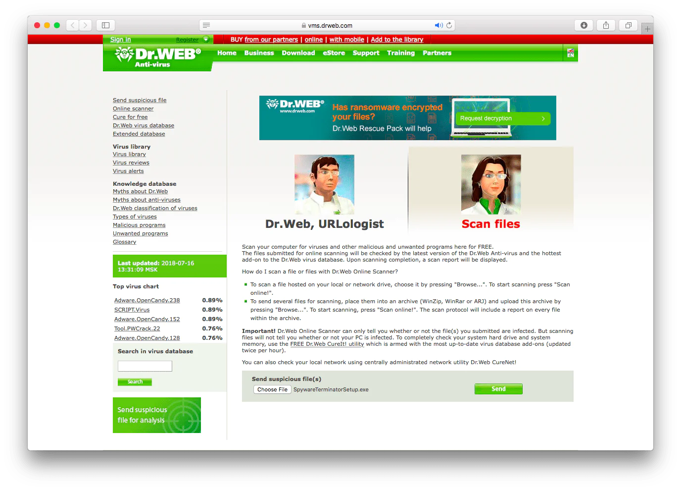Bilgisayarlara zararı araştıran onlarca yıl sağladığı güven ile Dr.Web, çevrimiçi tarayıcısına yüklenen dosyalar hakkında kesin karar verir.