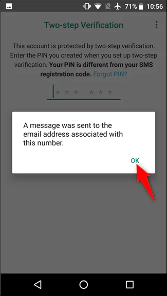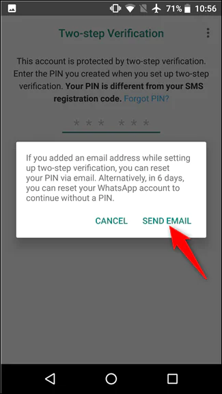 WhatsApp’ı açın ve PIN’inizi istediğinde, “PIN’i unuttum” bağlantısına dokunun.