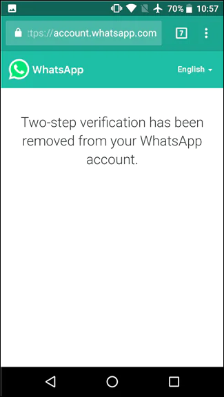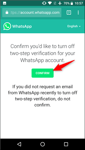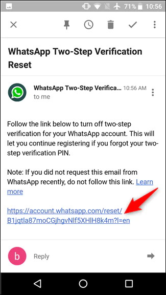 İki adımlı doğrulamanızı kapatmak için bir bağlantı içeren kısa bir e-posta almanız gerekir. Bağlantıya tıkladığınızda, tarayıcınızdaki WhatsApp hesabınıza yönlendirileceksiniz.
