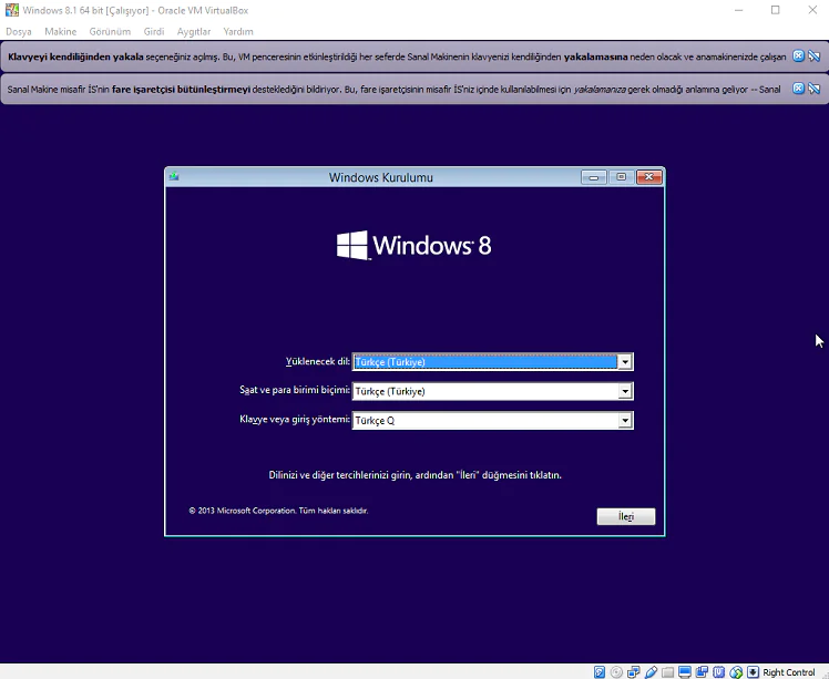 Windows 8.1 Kurulum adımları için buraya tıklayın.