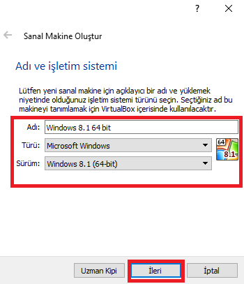 • İşletim sistemi türünü ve sürümünü de seçtikten sonra ‘İleri’ butonuna tıklayalım.