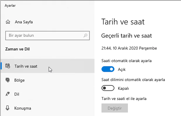 Yanlış Tarih ve Saat Ayarlarını Kontrol Edin