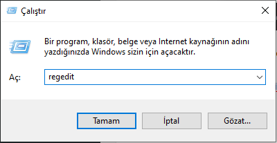 - regedit yazın ve Enter tuşuna basın