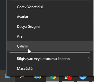 - Başlat’a sağ tıklayarak ve Çalıştır‘ı seçin.