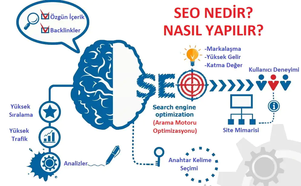 Hepsi bu değil. Aslında temel kavramdan başka bir şey değildir. Çekirdek süreç daha da karmaşıktır ve daha fazla uzmanlık gerektirir. Web sitenizi arama motorları için optimize etmek, halk arasında “Arama Motoru Optimizasyonu” (SEO) olarak bilinir ve sürecin ana amacı aşağıdaki gibidir.
