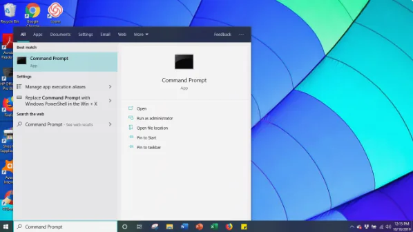 2.Windows arama çubuğuna gidin ve Komut İstemi yazın. Program arama penceresinde açıldığında “Yönetici olarak çalıştır’ı” tıklayın.