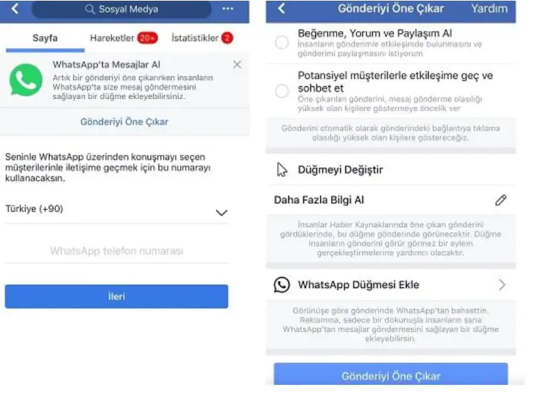 Facebook’un işletme sayfaları sahiplerini reklamlarda WhatsApp düğmesini kullanma konusunda bildirimler gönderdiğini fark ettik. Bildirime tıkladığınızda ise reklam paneline giderek WhatsApp düğmesini ekleyebiliyor ve kullanıcıları eklediğiniz numaraya yönlendirebiliyorsunuz, ekleme işlemi ise çok basit.