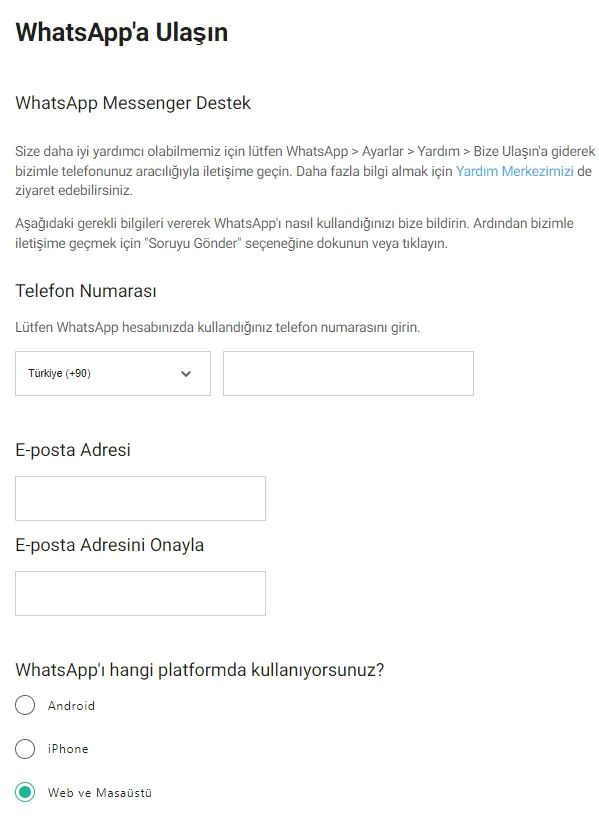 Uygulamanın yardım merkezi: https://faq.whatsapp.com