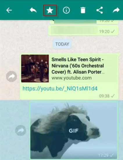 Sıklıkla arkadaşlarımız bize, komik şeyler veya faydalı bilgiler içeren, sürekli görmek istediğimiz mesajlar gönderir. Onları ayrı bir not defterine kaydedebilir veya daha iyisi, onları favori mesajlarınız olarak kaydedebilirsiniz. Bunu yapmak için, ilk önce favori olarak işaretlemek ve vurgulamak istediğiniz mesaja ve ardından uygulama penceresinin üst kısmındaki yıldız simgesine dokunun. Favori mesajlar, sohbet grubunun genel bilgileri altındaki ilgili sohbete kaydedilir. Özel Mesajlar (Featured Messages) için arama yaptığınız, favori mesajları bu kısımda bulabilirsiniz.