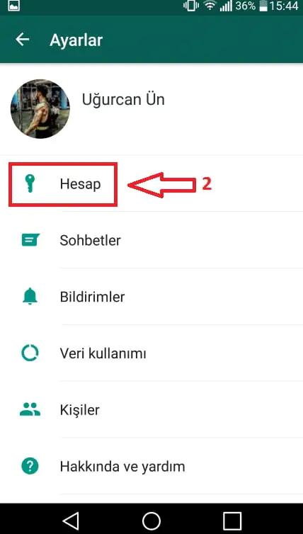 - Ayarlar menüsünden ise Hesap bölümüne giriyoruz.