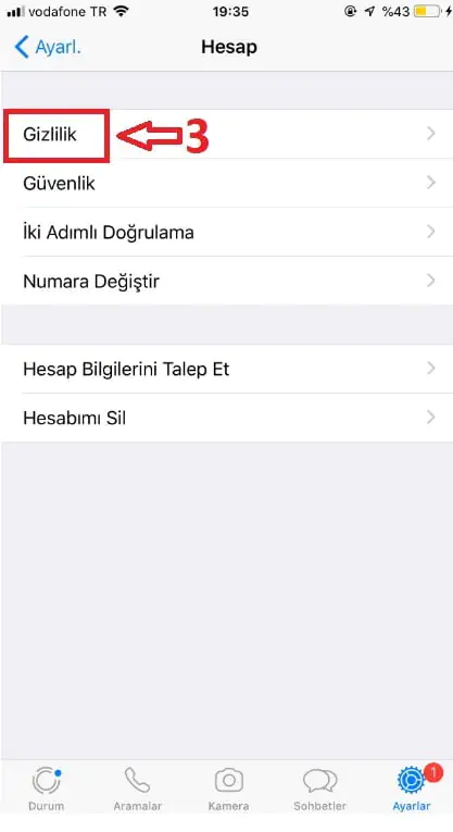 - Açılan Hesap menüsünden ise Gizlilik kısmına geçiyoruz.