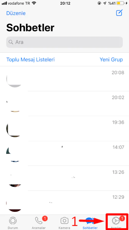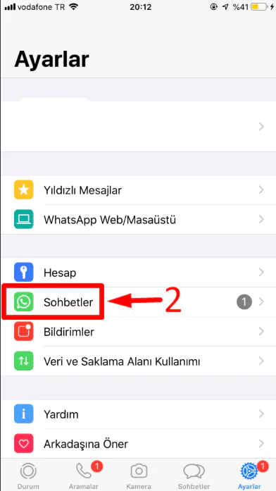 Daha sonra açılan açılan Ayarlar menüsünde bulunan Sohbetler bölümüne giriyoruz.