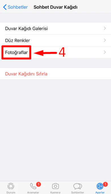 Bir sonraki ekrandan ise sohbet duvar kağıdını seçebileceğimiz Fotoğraf havuzunu işaretliyoruz.