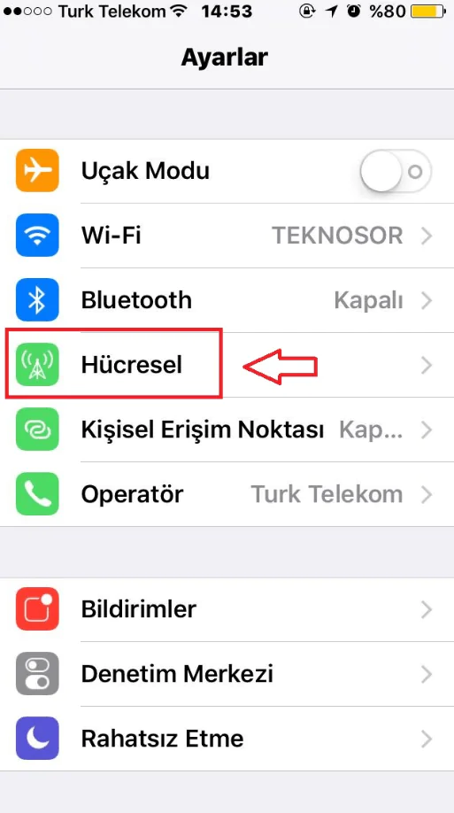 - Ardından açılan sayfada Hücresel menüsüne dokunalım.