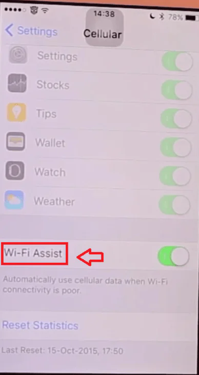 - Açılan sayfada en aşağıda Wi-Fi Assist seçeneğini görebilirsiniz, aşağıdaki resimde de görüldüğü gibi.
