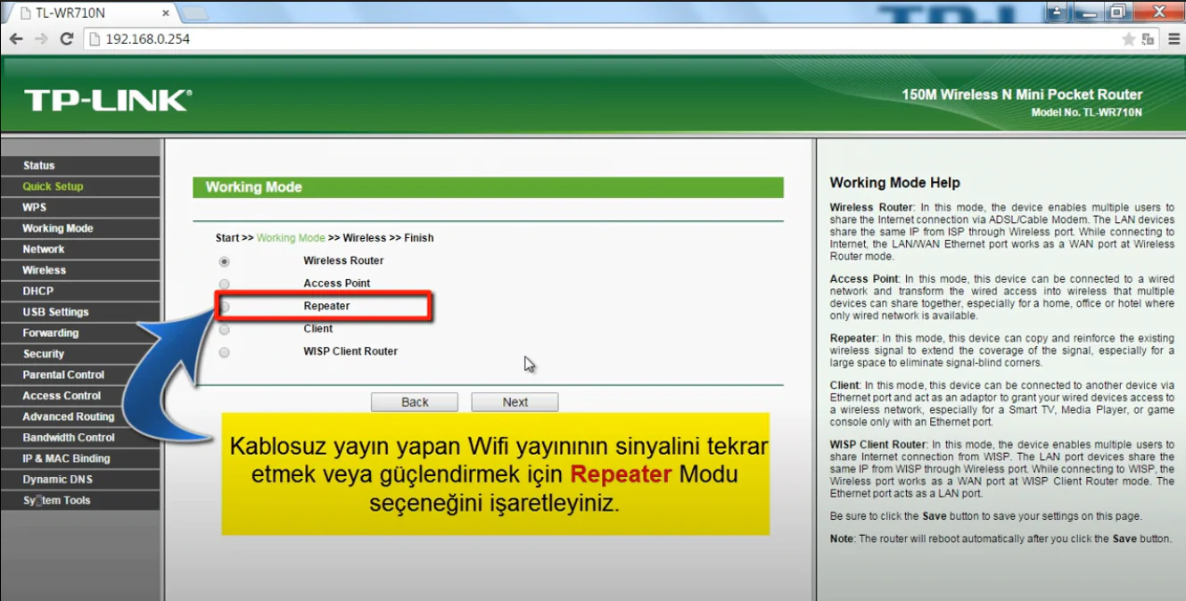 Cihazın Repeater  modu kurulumu ise şu şekilde gerçekleştirebilirsiniz.