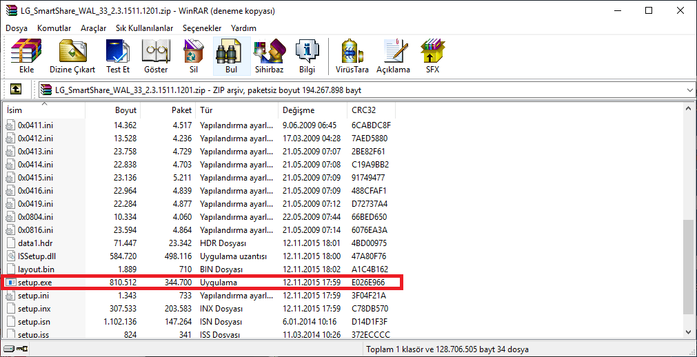 - İndirme işlemi tamamlandıktan sonra, indirdiğimiz sıkıştırılmış arşiv dosyasını açıyoruz.