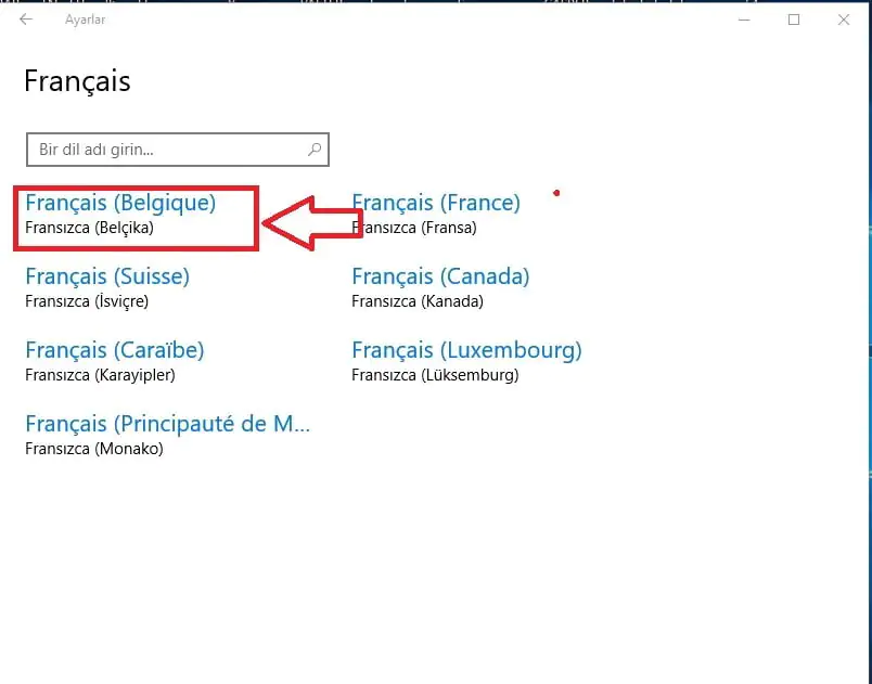 - Dil tercihini yaptıktan sonra, seçtiğiniz dilin değişik ülkeler için farklı seçenekleri varsa bu seçenekler arasından sisteminizde kullanmak istediğiniz dil seçeneğini de seçelim. (Örn: EN(US), EN(UK) vs.)