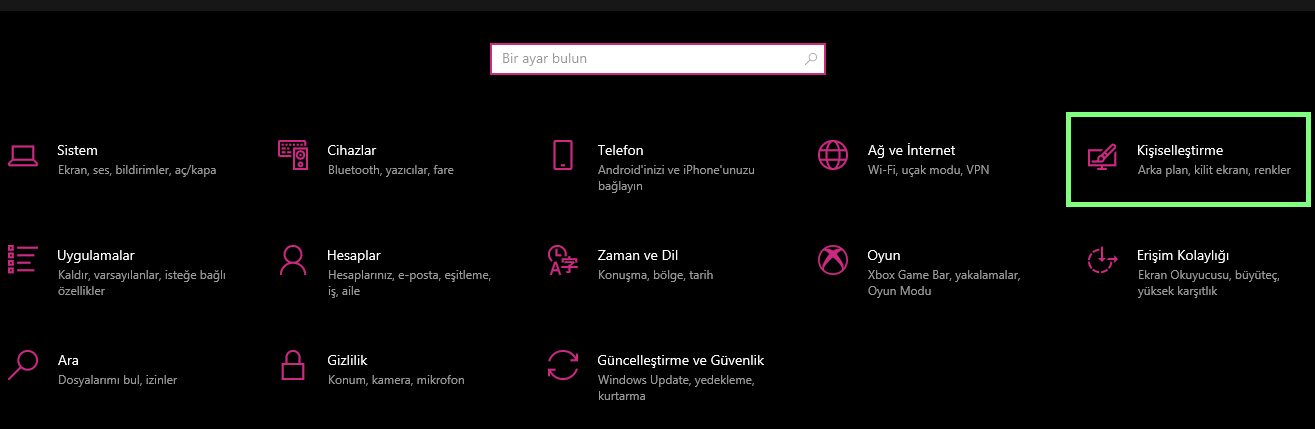 1)Bilgisayarınızın ayarlar menüsüne giriş yapın. Bunun için sol ak-lt kısımda yer alan arama bölümüne ayarlar yazmanız yeterli olacaktır.