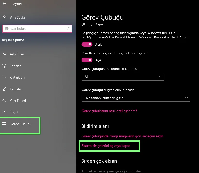 ETİKETLER:görev çubuğu ayarınasıl yapılırpil simgesiwindows 10