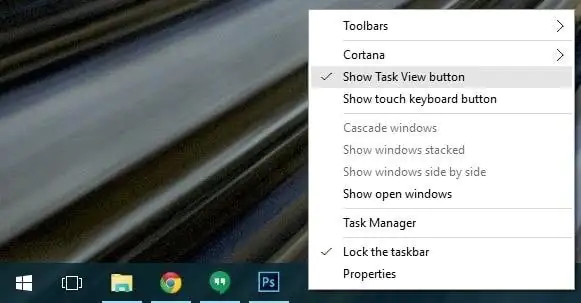 - Menüden işareti kaldırmak için Görev Görünümü Göster düğmesini tıklatınız. Bu görev görünümü görev çubuğundan tamamen kaldıracaktır. Geri istiyorsanız, işlemi tekrarlayabilirsiniz.