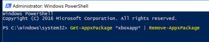 Xbox: Get-AppxPackage *xboxapp* | Remove-AppxPackage