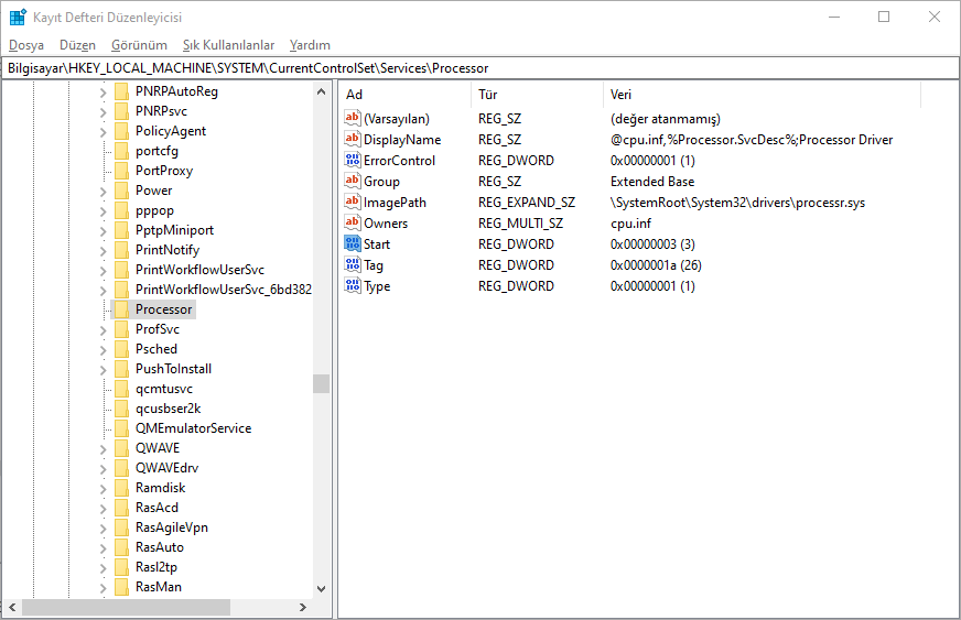 HKEY_LOCAL_MACHINESYSTEMCurrentControlSetServicesProcessor